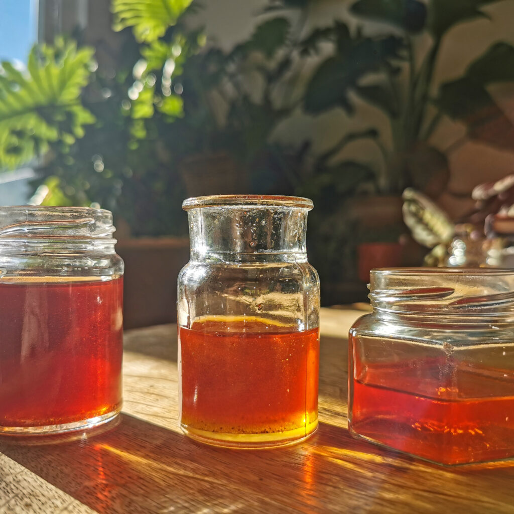 Det er ligesom at lave en infusion, samme forhold mellem urt og vand med en enkelt ændring. Da vi ikke skal drikke vandfasen ligesom vi drikker infusioner, lader vi den altid trække mindst 12 timer, gerne 24. Urtedele der skal koges, koges stadig, derefter lader du dem trække i 12 – 24 timer.