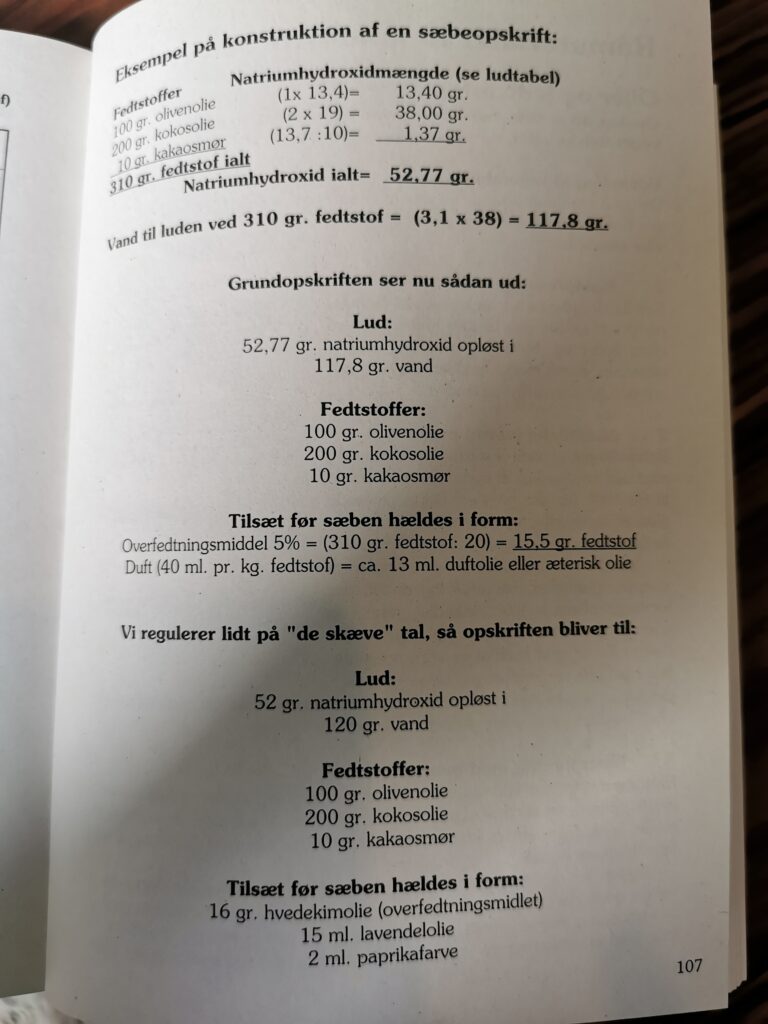 Opskrifter finder du på side 13 og hvordan du sammensætter din egen sæbe, finder du på side 16 og 17. (sidetal fra pdf)