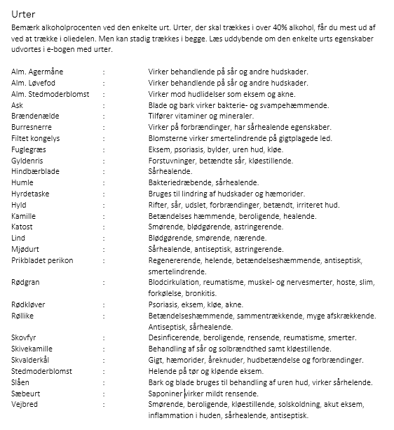 Det kommende er en refleksion af hvad jeg har lært på urteskolen, samt fra den tid jeg arbejdede hos Urtegaarden og hvad jeg selv har fundet frem til gennem tiden med eksperimenter.