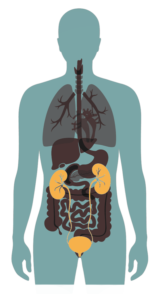 Nyrerne er en del af blodkarsystemet; nyrerne påvirker hele kroppen gennem dens påvirkning af tryk, saltbalance, ph balance og dens evne til at udrense uønskede og udtjente stoffer fra kroppen. Nyrerne påvirkes af blodets indhold og blodet påvirkes af nyrernes evne til at filtrere. Blodet er igen påvirket af lever og fordøjelse samt lymfesystemets evne til at opsamle væske og affaldsstoffer, og sådan kunne man fortsætte. Min pointe er, at alt i kroppen er et evigt sammenspil og når du påvirker en ting, påvirker du alt – både positivt og negativt. Derfor er det værd at huske at støtte alle kroppens systemer, når du støtter et specifikt område!